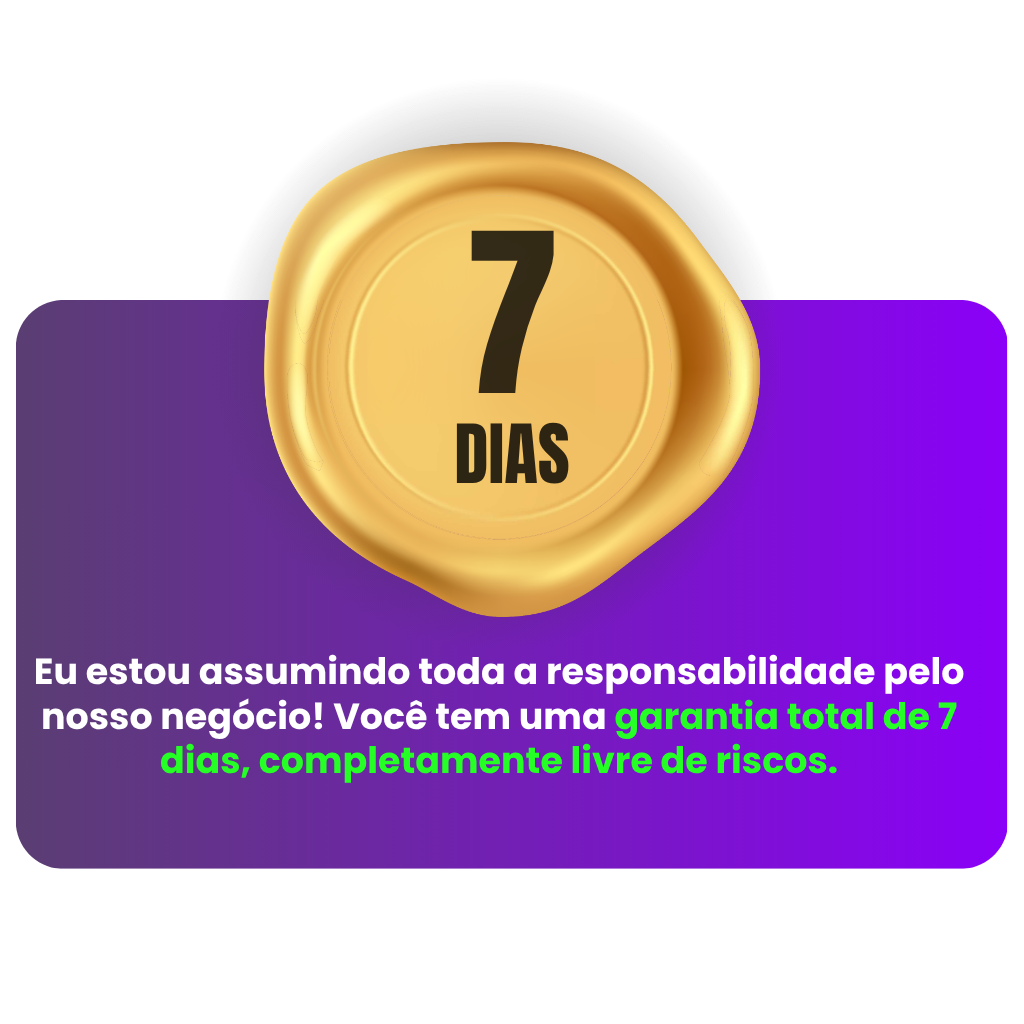 Sim! Você tem, por Lei, o direito de testar o curso por 7 dias. Se por algum motivo você sentir que o curso não é para você, me mande uma mensagem que eu devolverei 100% do seu dinheiro. Sem complicações, sem questionamentos e sem burocracia.